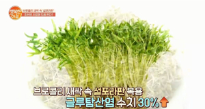 - 브로콜리 새싹에는 설포라판(Sulforaphane)이 성체 브로콜리보다 훨씬 많이 들어 있습니다.