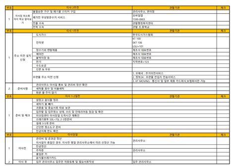 - 큰 가구 및 가전의 설치 및 이전 일정 협의도 필수입니다.